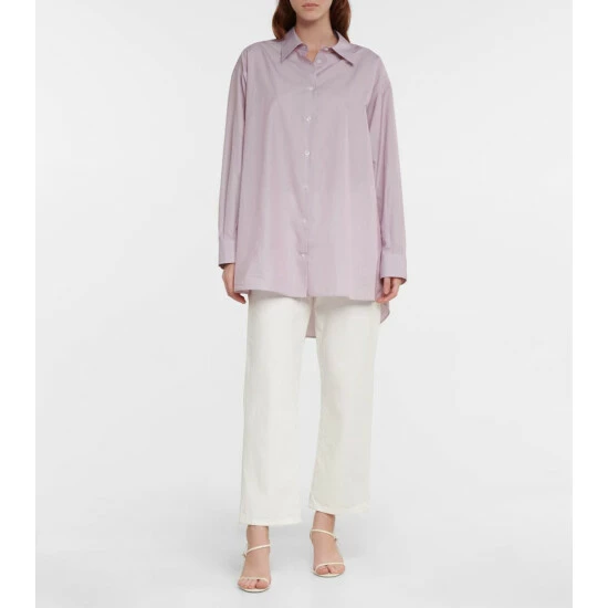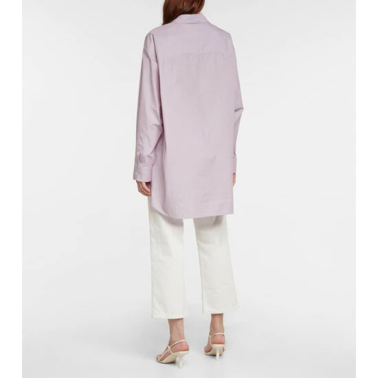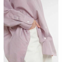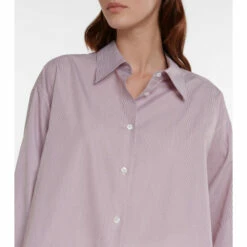The Row’s signature oversized silhouettes continue with the Luka shirt. It’s made from pinstriped cotton poplin and a button-down front.