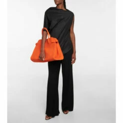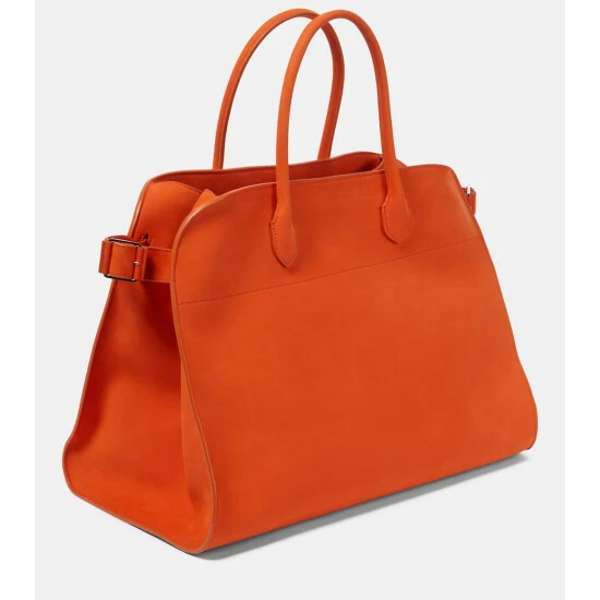Proof of The Row’s attention to quality and detail, the iconic Margaux 17 tote bag is Italian-made from soft suede. In exclusive-to-Mytheresa orange, this capacious design has durable protective feet, belted gusseted side panels, and curved top handles.