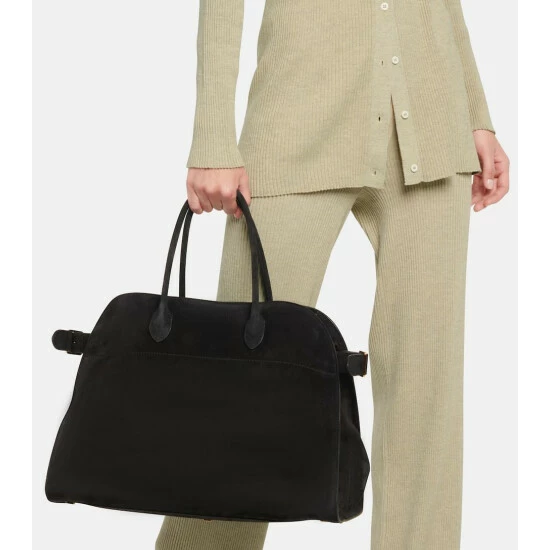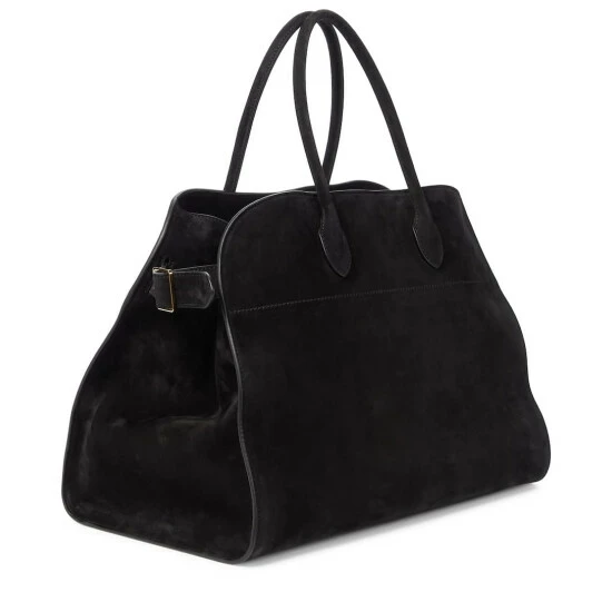 Few bag styles inspire sophistication like the Margaux tote from The Row. Made from soft suede in classic black, the minimalist trapezoid shape has belted side gussets that can be let out on carryall days. Carry yours against the label’s menswear-inspired suiting.