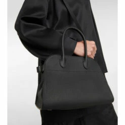 Look to The Row’s black Margaux leather tote when you need a bag that’s suitable for daily life. Crafted with an attention to the utmost quality and detail, it features rounded top handles and belted gusseted side panels/