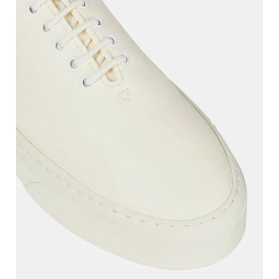 The white Marie H sneakers from The Row are primed for busy on-the-go lifestyles. Updated in nappa leather with lace-up tongues, they have flatform rubber soles for optimum comfort.