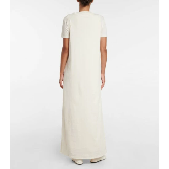 The Maritza T-shirt dress from The Row is designed with a separate layer, allowing for versatile styling options or a layered look. It’s made from organically cultivated cotton jersey with a maxi length.