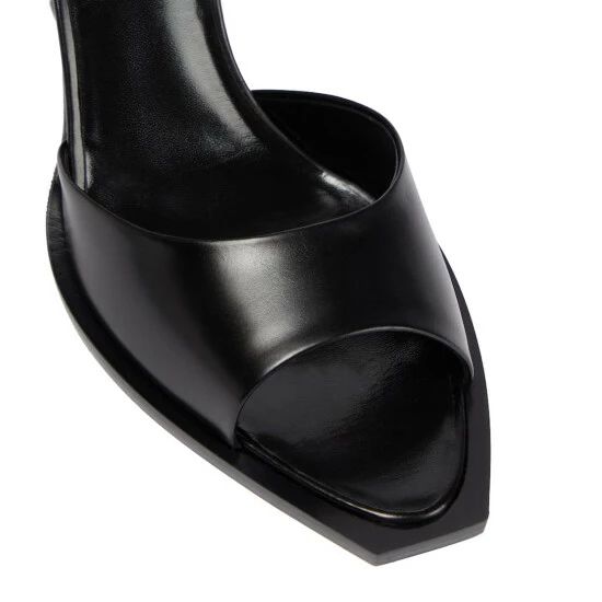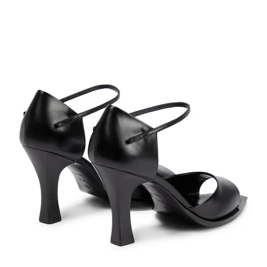 Opt for sophisticated footwear with The Row’s Mary Jane sandals. Made from smooth black leather, they have contemporary square toes and are set atop elevated curved plinth heels.