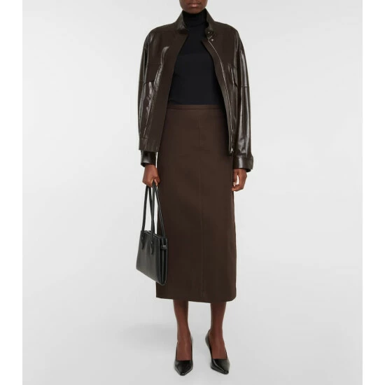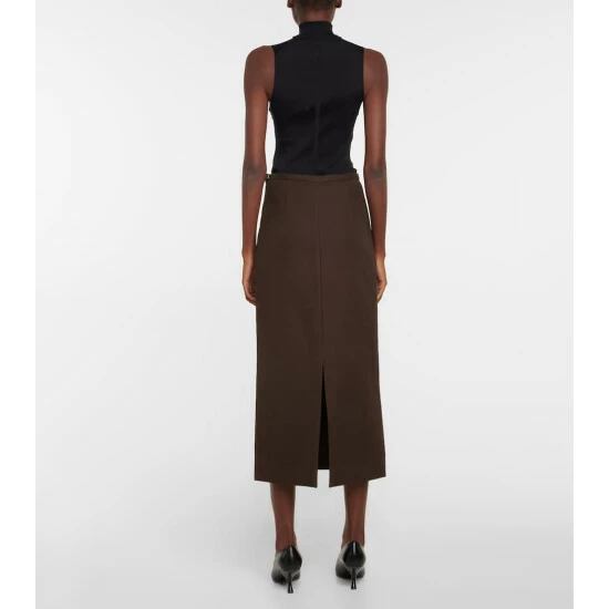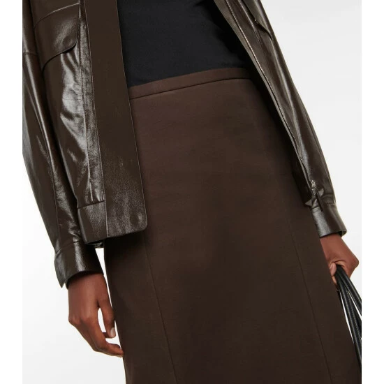 Any well-curated workwear edit needs minimalist staples like The Row’s Matias midi skirt. It’s made from cotton and wool twill with a straight silhouette, featuring an elasticated waistband, seam detailing, and a slit at the back.