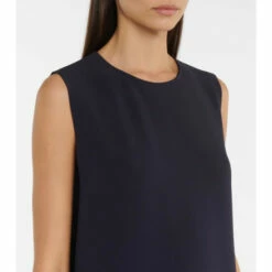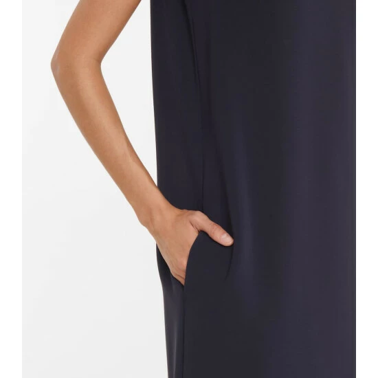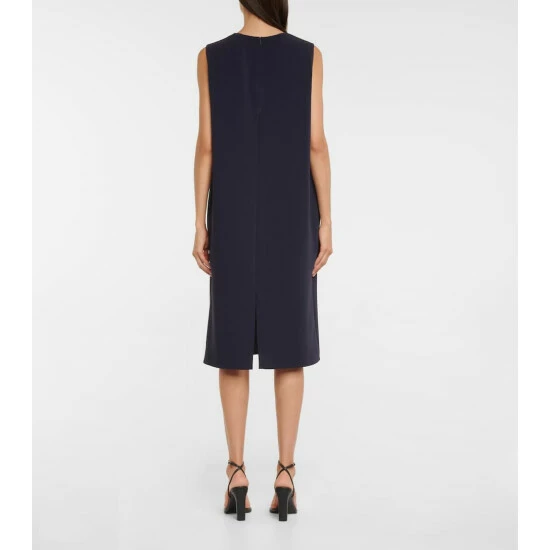 The Mirna dress is The Row’s iteration of the classic sheath silhouette. It’s made from a fluid cady fabric in classic navy blue and luxuriously lined with silk.