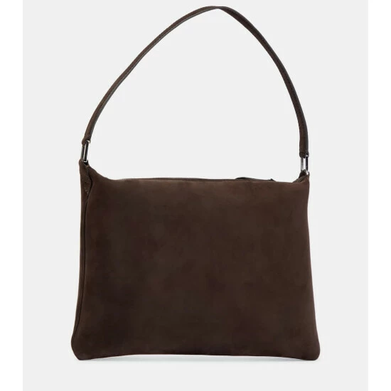 The Morgan bag from The Row is the versatile day bag your wardrobe is missing. The design has a subtle trapeze shape, featuring a short strap that lets the bag fall perfectly under the shoulder, and is made from dark brown nubuck leather.