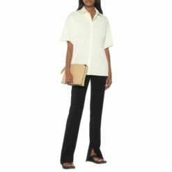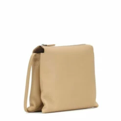 Invest in the timeless minimalism championed by The Row with this beige Nu Twin bag. Made from grained leather, it has a capacious, two-compartment interior with a sleek gold-toned zip top. Detach the shoulder strap to carry it to appointments as a pouch.