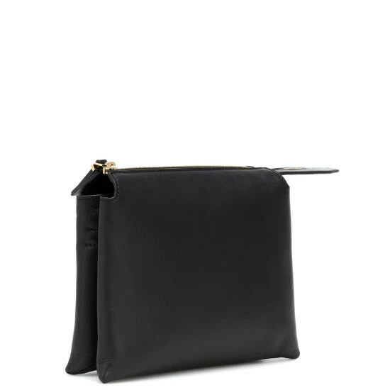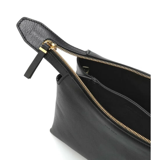 True to The Row’s less-is-more sensibilities, the Nu Twin Mini crossbody bag is a simply shaped two-compartment silhouette crafted from smooth black leather. The style seals with a gold-toned zip at the top and swings from a slender shoulder strap.
