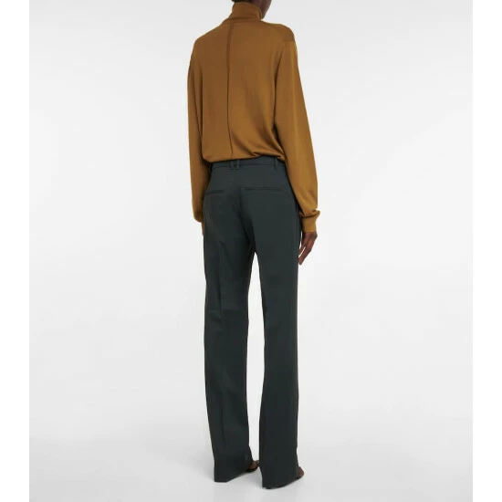 Turn to The Row for foundations for a capsule wardrobe, such as the Pietrina pants. Made from virgin wool, the style in dark green has a boot-leg silhouette and pleating at the front and back.