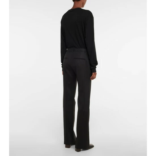 The Pietro pants from The Row are a contemporary take on tailoring, designed with slim flared-hem legs. They’re made from a stretchy wool blend with pressed creases.