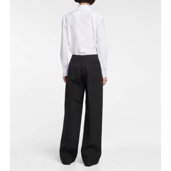 Trust The Row to design timeless tailored pieces, such as these wide-leg pants. Made from a structured virgin wool-and-silk blend, the dark-grey style has a front seam and tear-drop side pockets.
