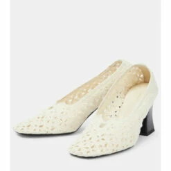 The Row’s Raffaela pumps prove the power of contrasting design. The squared-toe pair combines floral crochet uppers with sculptural, flared block heels.