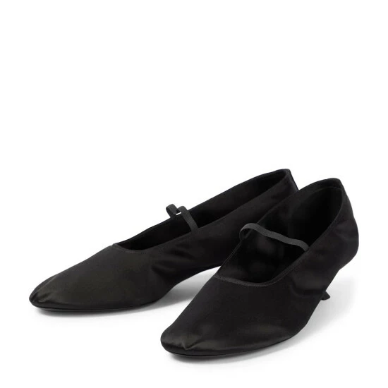 These pumps from The Row are inspired by classic ballet slippers. Made from satin, they have an elasticated strap and kitten heels.