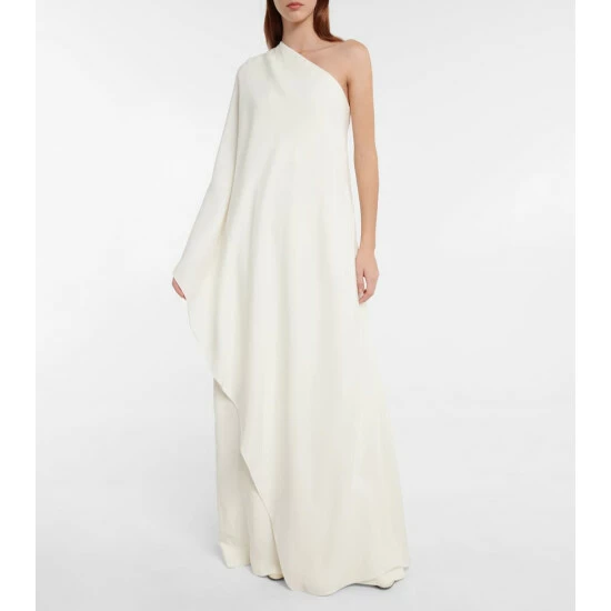 The Row’s aesthetic is a study in restrained elegance. A chic option for the modern bride, this gown is made from silk crêpe and has a one-shoulder, draped silhouette.
