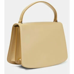 The Row’s timeless vision is exemplified by the Sofia shoulder bag. This style has a streamlined silhouette with a curved base, a fixed top handle, and a metal turn-lock closure.