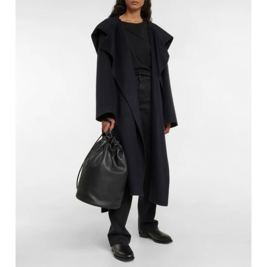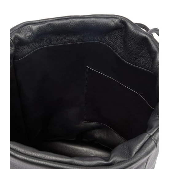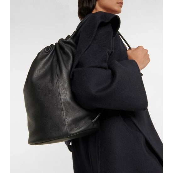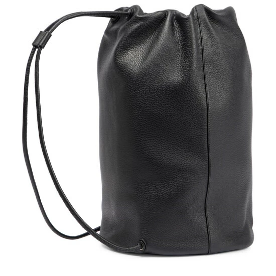 Made from grained leather, The Row’s Sporty backpack has a drawstring top that connects to narrow shoulder straps.