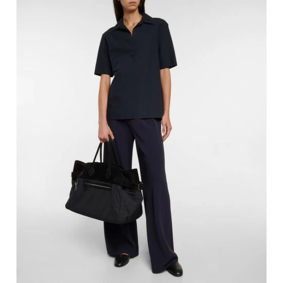 Store weekend essentials in this capacious tote from The Row. Made from a technical fabric that’s trimmed with suede, it has double top handles, and internal slip pockets and an external zipped pocket.