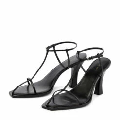 These sandals from The Row are designed with barely-there T-bar straps. Crafted from smooth leather, the minimalistic design is complete with stacked heels for optimum comfort.