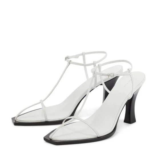 These sandals from The Row are designed with barely-there T-bar straps. Crafted from smooth leather, the minimalistic design is complete with stacked heels for optimum comfort.