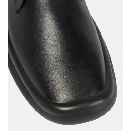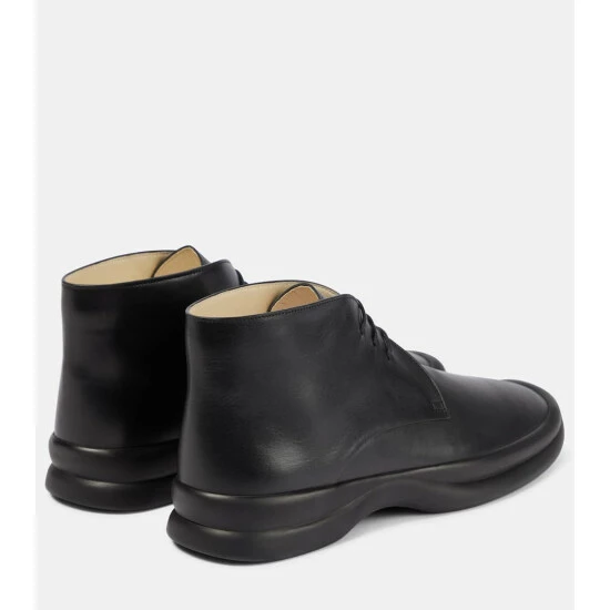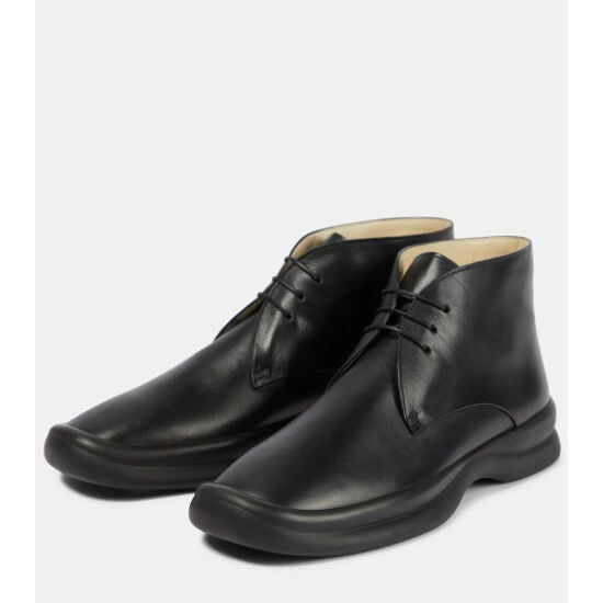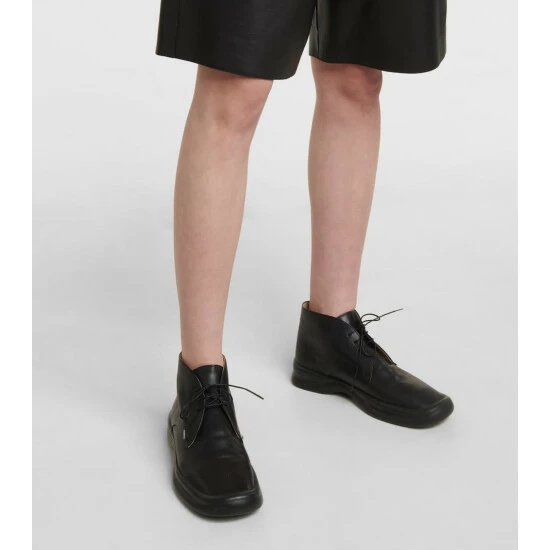 The Row presents the Town Lace Up style as a hybrid between Derby shoes and ankle boots. They’re made from smooth leather, and feature squared toes and rubber soles.