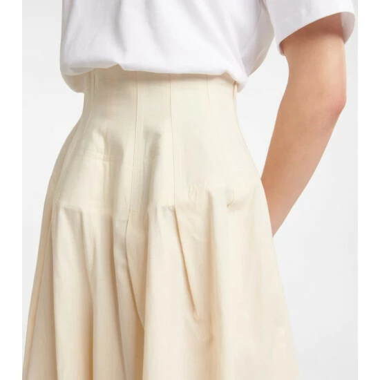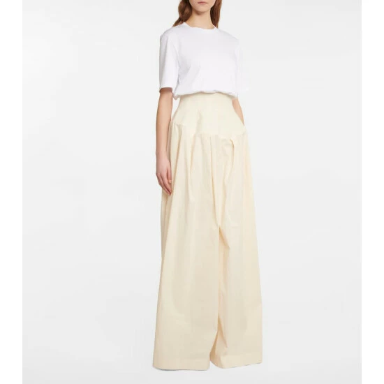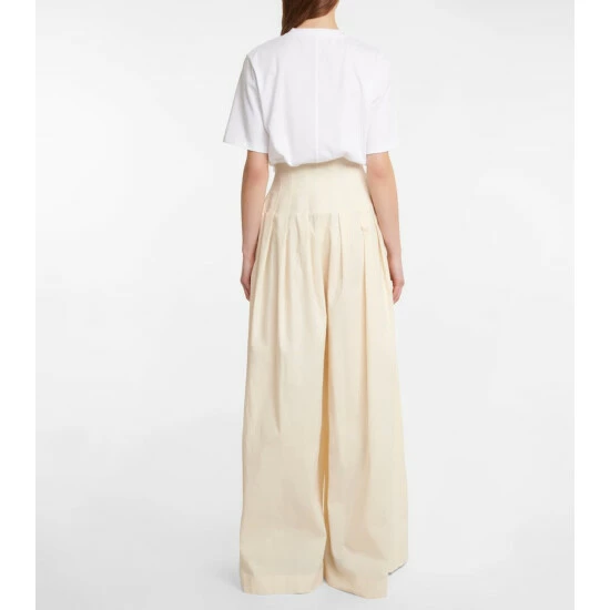 The Row presents a feminine take on tailoring with the Trude pants. They’re cut from cotton with wide legs and a high waist that is boned for a corsetry-inspired fit.