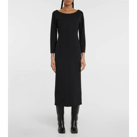The Row’s Tulip midi dress is the embodiment of understated elegance. Made from double-faced virgin wool twill, the long-sleeve style has a scoop neck, open-back, and close fit.