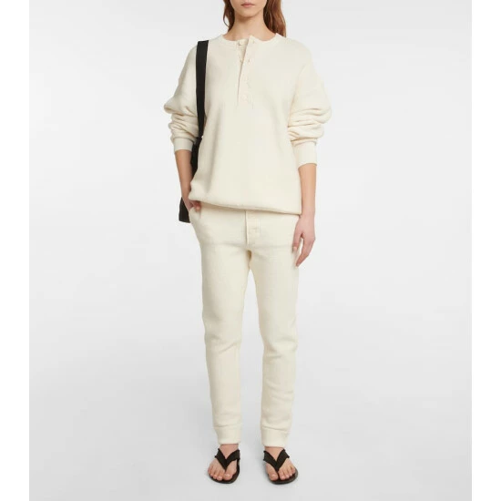 Elevate your loungewear edit with this sweatshirt from The Row. It’s waffle-knitted from a cotton-blend that’s backed with cashmere for softness, and features a sporty buttoned placket at the front.